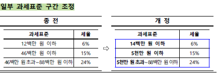 과세표준 구간이 조정되어, 더 많은 분들이 낮은 세율 혜택을 받을 수 있게 되었습니다.
